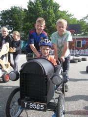• 1 team/bil består af 3 børn under 18 år, men der må gerne være et heppekor / mekaniker / servicevogn tilknyttet sæbekassebilen.